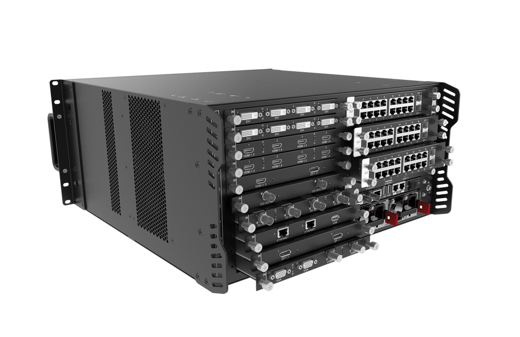 Based on the powerful hardware FPGA system architecture, with a modular and plug-in design, the H5 features a stable and highly efficient pure hardware architecture, and provides a variety of connector modules for flexible and personalized configuration, allowing for easy maintenance and low failure rate. The H5 provides industry-standard input connectors, including HDMI, DVI, DP, VGA, CVBS, SDI and IP, and supports 10-bit video source input and processing, as well as 4K high-definition inputs and outputs. The H5 also provides two kinds of LED 4K sending cards, allowing for the backup between the OPT ports and Ethernet ports as well as ultra-long distance transmission. Moreover, the H5 supports multi-screen and multi-layer management, input and output EDID management and monitoring, input source renaming, BKG and OSD settings and more, bringing you a rich image construction experience.